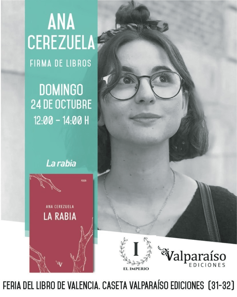 ¡Hola, Valencia! El 24 de octubre de 12h a 14h estaré firmando libros en la caseta de Valparaíso Ediciones en la Feria del Libro de Valencia, en los Jardines de Viveros.